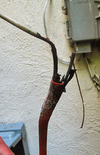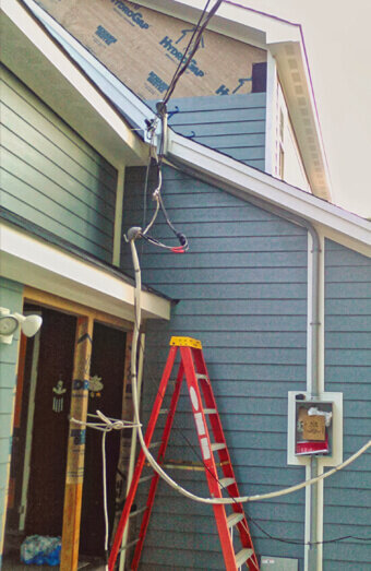Rectification of aerial service lines with insufficient clearance, damaged insulation, non-compliant point of attachment, or deteriorated service hardware.
